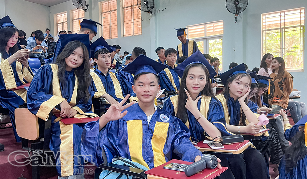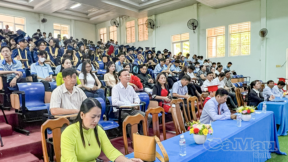 Quang cảnh buổi lễ trao bằng tốt nghiệp và chương trình kết nối doanh nghiệp, giới thiệu việc làm tại Trường Cao đẳng Nghề Việt Nam - Hàn Quốc Cà Mau.