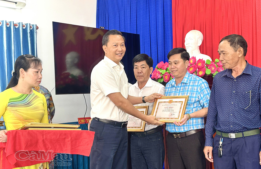 Đảng bộ xã Vĩnh Hậu khen thưởng 7 tổ chức cơ sở đảng và 10 tập thể lãnh đạo, quản lý hoàn thành xuất sắc nhiệm vụ năm 2025. (Trong ảnh: Đồng chí Trương Thanh Nhã, Bí thư Đảng uỷ xã Vĩnh Hậu trao giấy khen cho các tập thể).