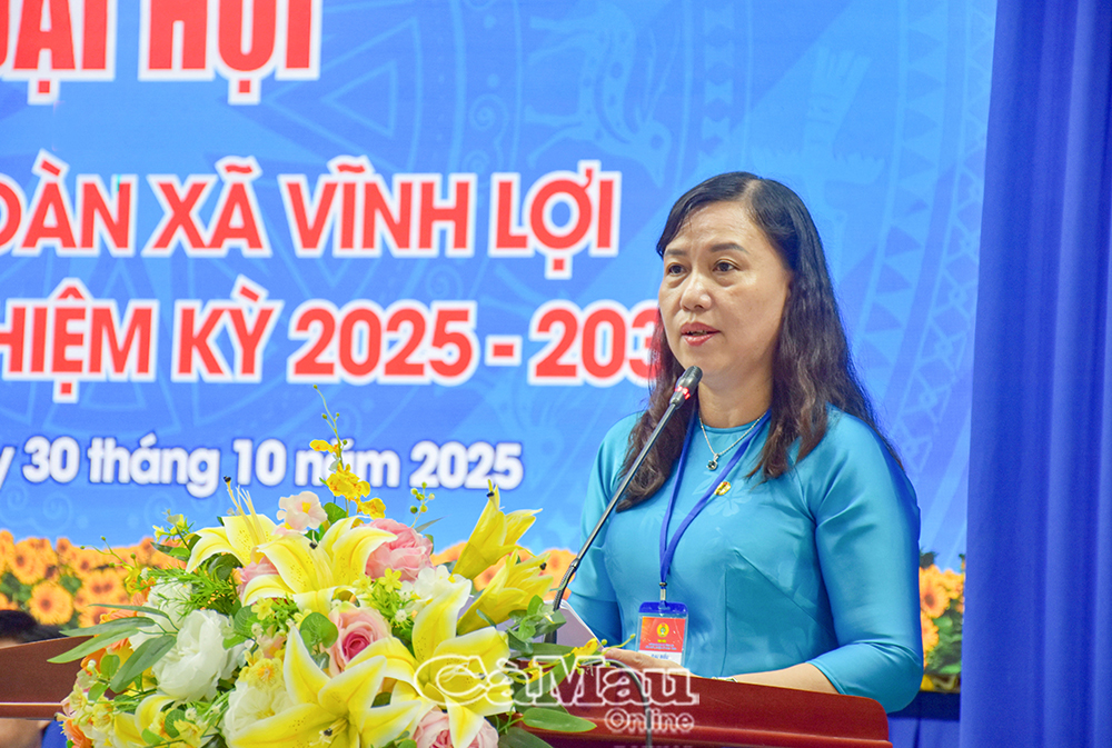 Phát biểu chỉ đạo tại Đại hội Công đoàn xã Vĩnh Lợi lần thứ I, nhiệm kỳ 2025-2030 diễn ra chiều 30/10, đồng chí Huỳnh Út Mười, Uỷ viên Ban Chấp hành Tổng Liên đoàn Lao động (LĐLĐ) Việt Nam, Phó Chủ tịch Uỷ ban MTTQ Việt Nam tỉnh, Chủ tịch LĐLĐ tỉnh Cà Mau, đề nghị Công đoàn xã tiếp tục đổi mới nội dung, hình thức tuyên truyền, giáo dục đoàn viên; thực hiện tốt công tác chăm lo, bảo vệ quyền và lợi ích hợp pháp, chính đáng của người lao động, đồng thời đẩy mạnh ký kết thỏa ước lao động tập thể, phát triển đoàn viên và xây dựng tổ chức Công đoàn vững mạnh.