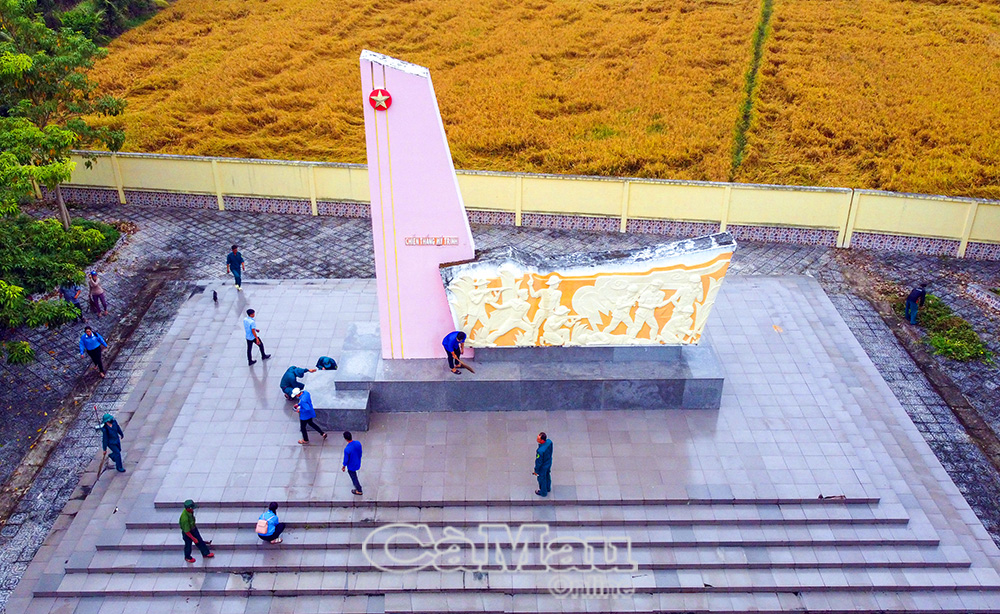 Đoàn viên, thanh niên tổ chức làm vệ sinh môi trường tại bia Chiến thắng Mỹ Trinh.