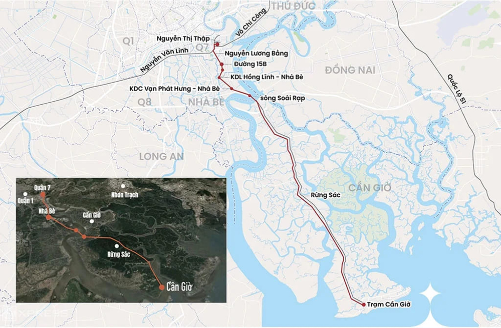 Tuyến đường sắt cao tốc Bến Thành - Cần Giờ dự kiến khởi công ngày 19/12/2025 và hoàn thành quý 2/2028, giúp di chuyển từ trung tâm Quận 1 - Cần Giờ chỉ mất 16 phút.