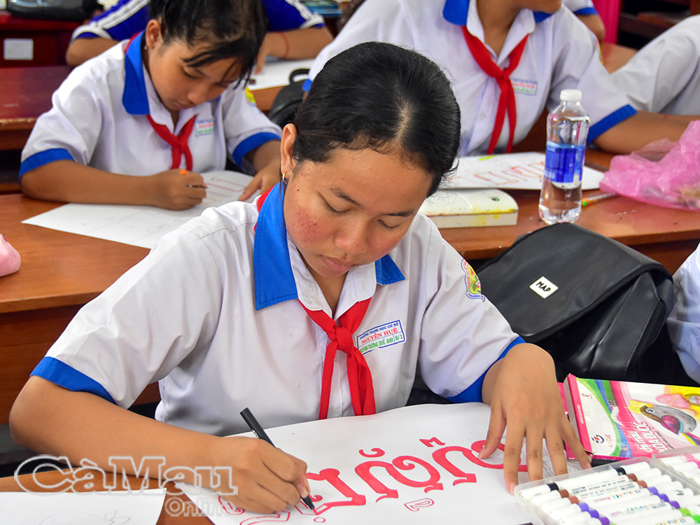 Nổi bật trong chương trình là hội thi viết chữ Khmer với chủ đề “Chúc mừng năm mới”, thu hút đông đảo học sinh tham gia, vừa giữ gìn ngôn ngữ vừa lan toả những giá trị văn hoá đặc sắc của dân tộc Khmer.