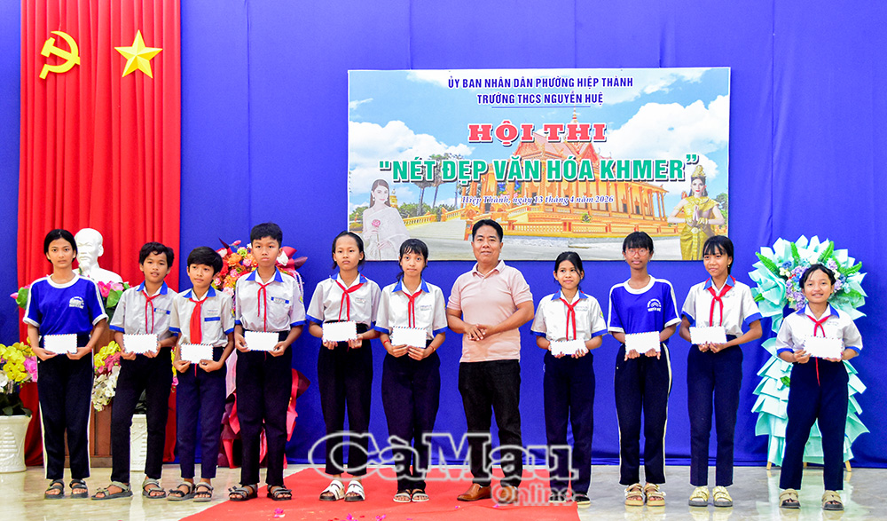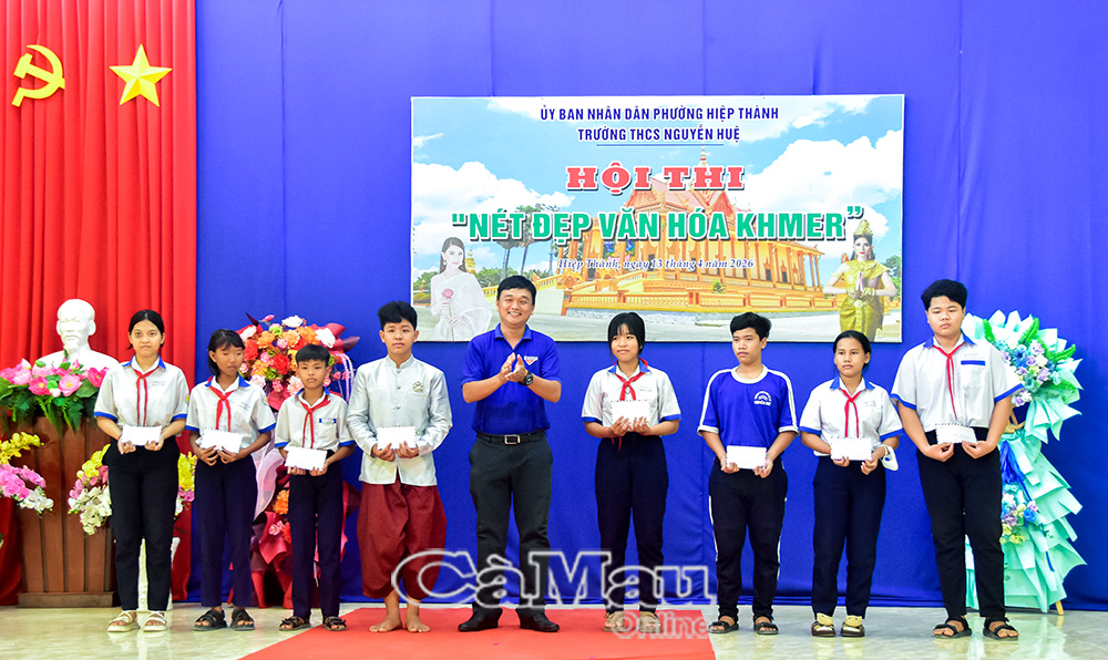 Báo Cà Mau Chiều 13/4, Trường THCS Nguyễn Huệ (phường Hiệp Thành) tổ chức nhiều hoạt động chào mừng tết cổ truyền Chôl Chnăm Thmây, vừa tạo không khí vui tươi, phấn khởi, góp phần giữ gìn bản sắc văn hoá dân tộc Khmer, vừa thiết thực chăm lo cho học sinh có hoàn cảnh khó khăn.
