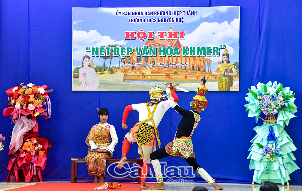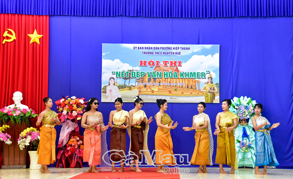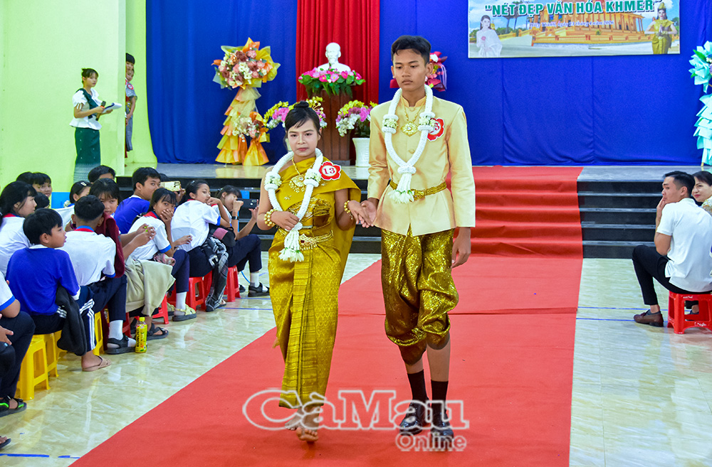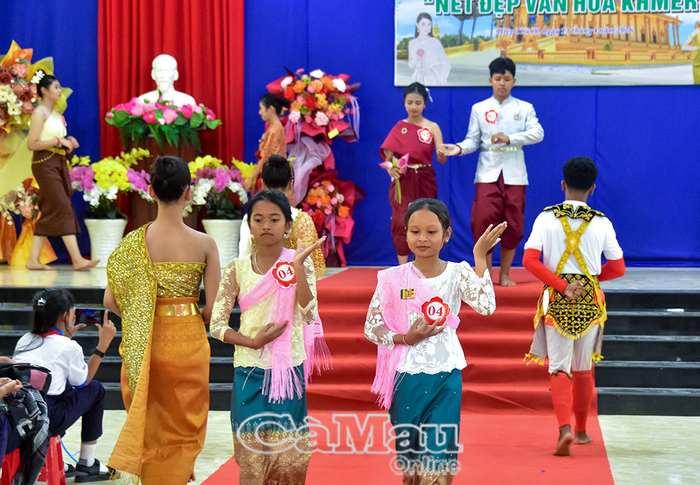 Bên cạnh đó, hội thi “Nét đẹp văn hoá Khmer” với nhiều phần thi đặc sắc như: trình diễn trang phục, thể hiện năng khiếu và phần thi ứng xử, tạo sinh khí sôi nổi trong học đường. Dưới nền nhạc truyền thống, các em học sinh tự tin biểu diễn điệu múa Romvong, hát dân ca, múa khỉ chằn, thi kể chuyện và giới thiệu bản thân gắn với văn hoá dân tộc.