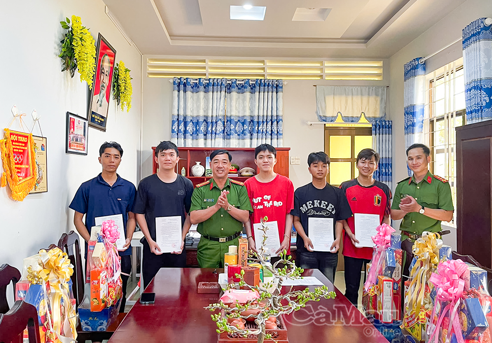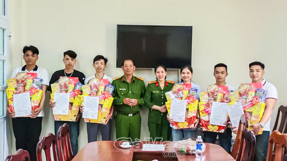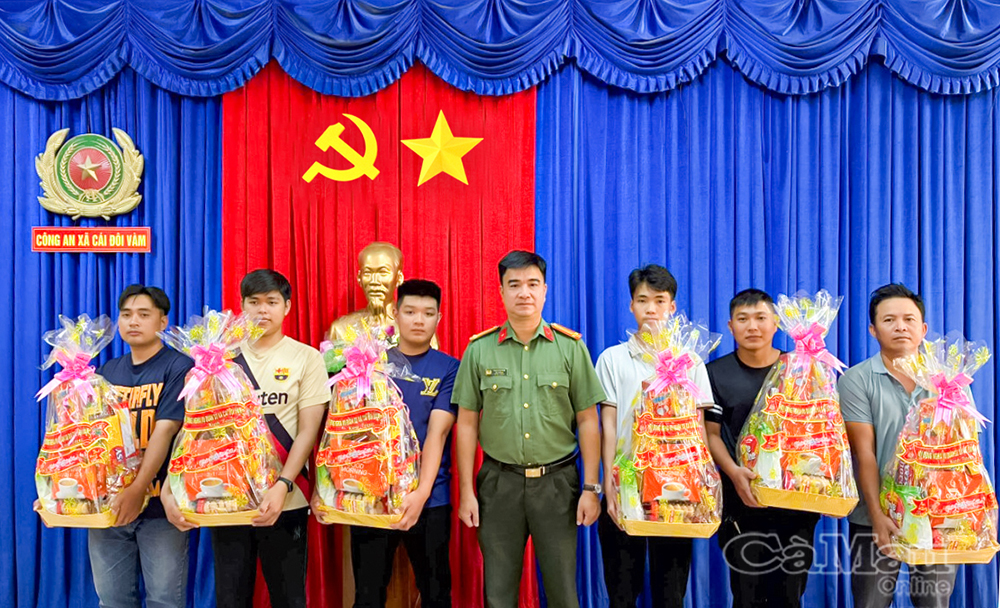 Công an xã Cái Đôi Vàm trao quà động viên các thanh niên trúng tuyển thực hiện nghĩa vụ tham gia CAND.
