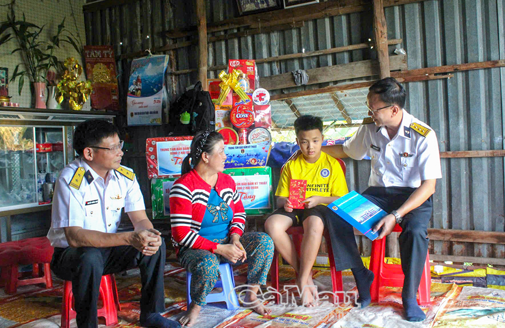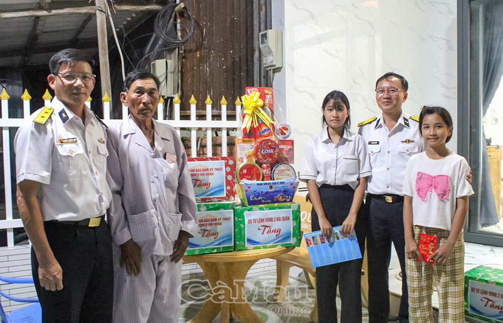 Báo Cà Mau Trong 2 ngày (29 và 30/1), đoàn công tác Trung tâm Bảo đảm kỹ thuật (Vùng 2 Hải quân) do Thượng tá Nguyễn Hùng Vỹ, Phó Chính uỷ Trung tâm Bảo đảm kỹ thuật, làm trưởng đoàn đã đến thăm, động viên và trao quà Tết cho các cháu học sinh là con ngư dân có hoàn cảnh khó khăn tại tỉnh Cà Mau.