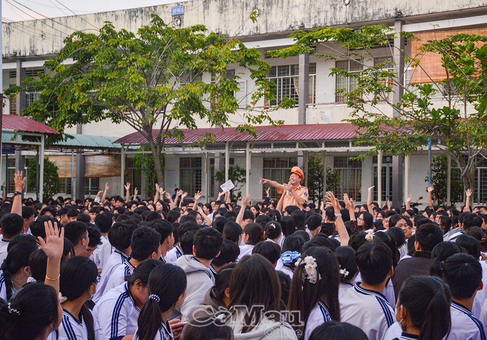 Tại Trường THPT Cà Mau, hơn 1.200 học sinh tham gia các chuyên đề về văn hoá giao thông và kỹ năng xử lý tình huống. Nội dung được truyền tải sinh động, gần gũi, tạo sự hứng thú và giúp học sinh “học mà chơi, chơi mà học”.