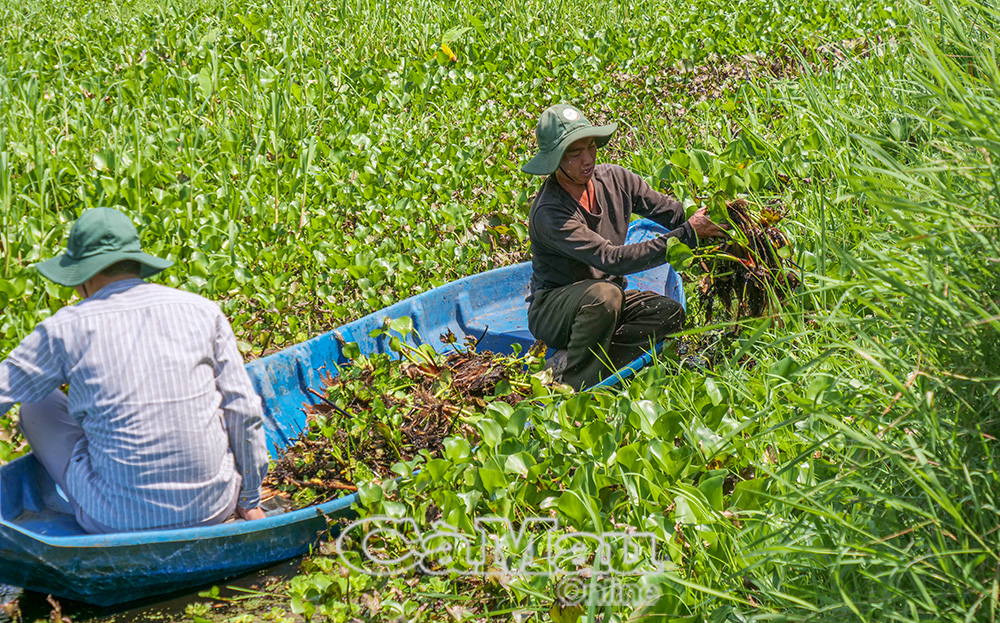Cán bộ, viên chức Vườn Quốc gia U Minh Hạ dọn bèo, lục bình trên tuyến kênh sẽ diễn ra hoạt động đua xuồng trong khuôn khổ sự kiện “Hương rừng U Minh” năm 2026.