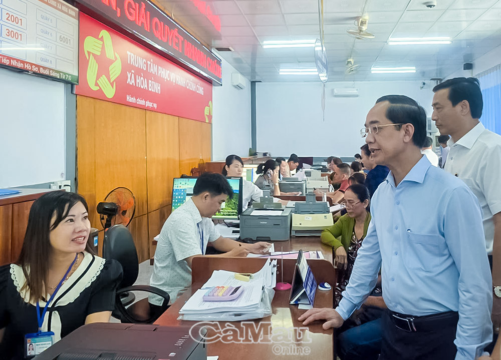 Đoàn công tác kiểm tra hoạt động của Trung tâm Phục vụ hành chính công xã Hoà Bình.