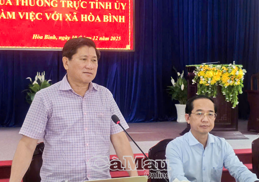 Phó Bí thư Tỉnh uỷ, Chủ tịch Uỷ ban MTTQ Việt Nam tỉnh Cà Mau Hồ Thanh Thuỷ đánh giá cao sự chuyển biến khá toàn diện trên các lĩnh vực của xã Hoà Bình trong 6 tháng qua.