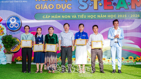 Báo Cà Mau Sau 1 ngày diễn ra sôi nổi, Ngày hội giáo dục STEAM cấp mầm non và tiểu học năm học 2025-2026, do Sở Giáo dục và Đào tạo (GD&ĐT) tỉnh Cà Mau tổ chức, bế mạc vào chiều 21/12. Ban Tổ chức đã trao 34 giải tập thể và 90 giải cá nhân.