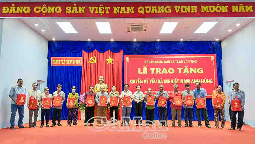 Báo Cà Mau Ngày 24/12, Đảng bộ, chính quyền và Nhân dân Xã Trần Văn Thời long trọng tổ chức lễ trao tặng “Quyển Kỷ yếu Bà Mẹ Việt Nam Anh hùng tỉnh Cà Mau” cho đại diện gia đình 124 Bà Mẹ Việt Nam Anh hùng (VNAH) trên địa bàn xã.