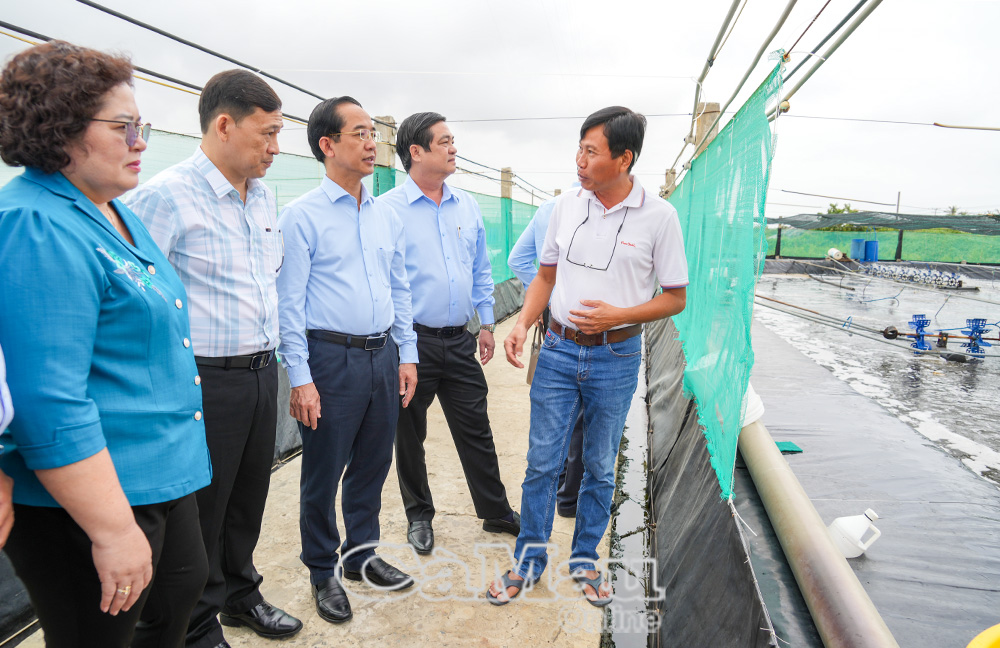 Trước đó, Phó Bí thư Tỉnh uỷ, Chủ tịch Uỷ ban MTTQ Việt Nam tỉnh Cà Mau Hồ Thanh Thuỷ và đoàn công tác Tỉnh uỷ khảo sát thực tế tại Hợp tác xã Đồng Tiến và mô hình nuôi tôm công nghệ cao trên địa bàn xã Vĩnh Hậu.