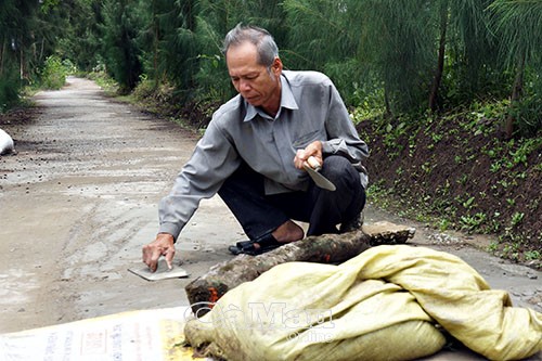 | Cựu chiến binh Phạm Hoàng Đức, Phó trưởng ấp Mỹ Hưng tiên phong giặm vá đoạn lộ sụp lún trước nhà, đảm bảo an toàn giao thông. |