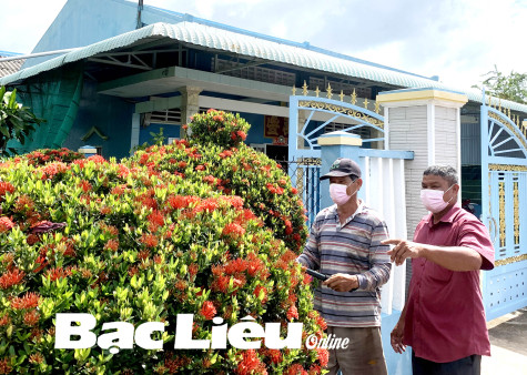 Cán bộ ấp Biển Đông A (xã Vĩnh Trạch Đông) vận động người dân chăm sóc cây xanh, hoa kiểng. Ảnh: H.T