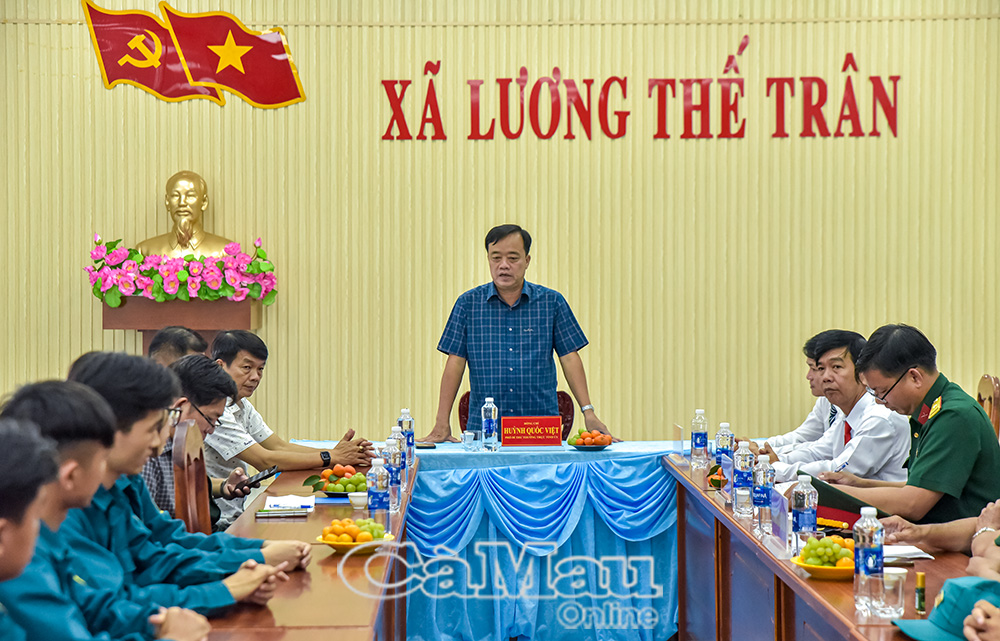 Đồng chí Huỳnh Quốc Việt lưu ý việc xây dựng lực lượng cần chú trọng vào chất lượng, lựa chọn những cá nhân có trình độ, đạo đức và am hiểu pháp luật để hình thành đội ngũ cán bộ tham mưu quân sự chất lượng cho cấp uỷ, chính quyền. Tiếp tục phối hợp chặt chẽ với lực lượng Công an và các đoàn thể để nắm chắc tình hình, không để bị động bất ngờ, sẵn sàng ứng phó trong mọi tình huống.