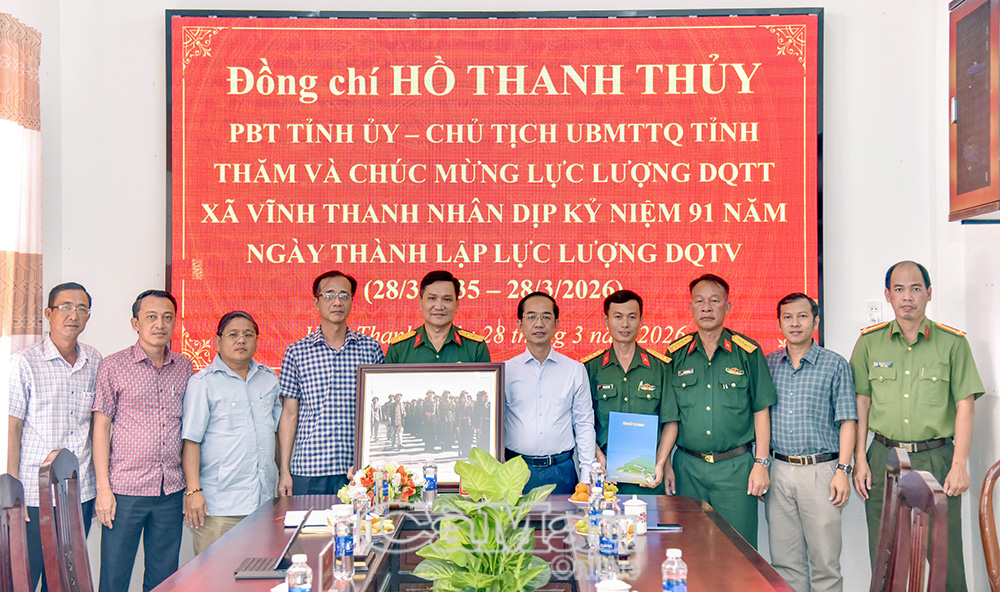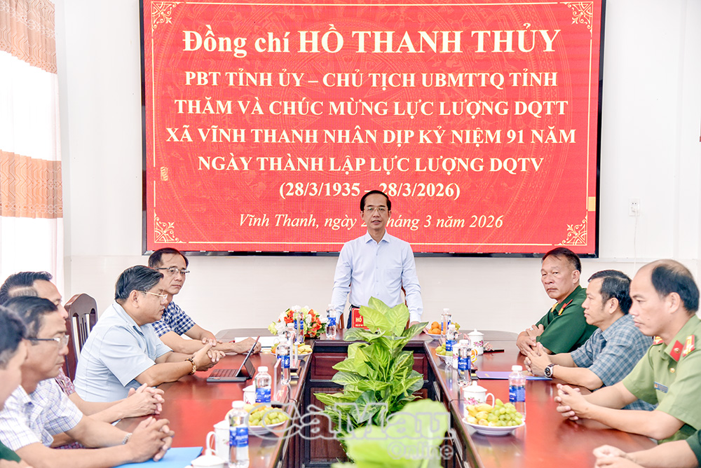 * Đoàn công tác tỉnh Cà Mau do đồng chí Hồ Thanh Thuỷ, Phó Bí thư Tỉnh uỷ, Chủ tịch Uỷ ban MTTQ Việt Nam Cà Mau, làm trưởng đoàn, đến thăm, chúc mừng cán bộ, chiến sĩ nhân kỷ niệm 91 năm Ngày truyền thống Dân quân tự vệ Việt Nam tại các xã Vĩnh Mỹ và Vĩnh Thanh.