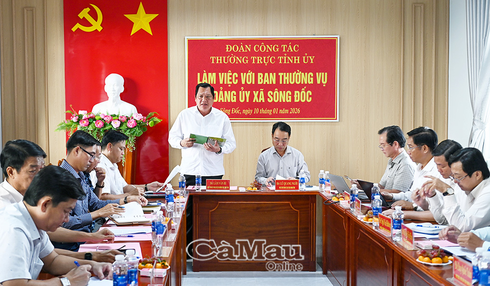 Chiều 10/1, Đoàn công tác Thường trực Tỉnh uỷ do đồng chí Lữ Quang Ngời, Phó Bí thư Tỉnh uỷ, Chủ tịch UBND tỉnh, làm trưởng đoàn có buổi làm việc với Ban Thường vụ Đảng uỷ xã Sông Đốc. Cùng dự có đồng chí Lâm Văn Bi, Uỷ viên Ban Thường vụ Tỉnh uỷ, Phó Chủ tịch Thường trực UBND tỉnh.