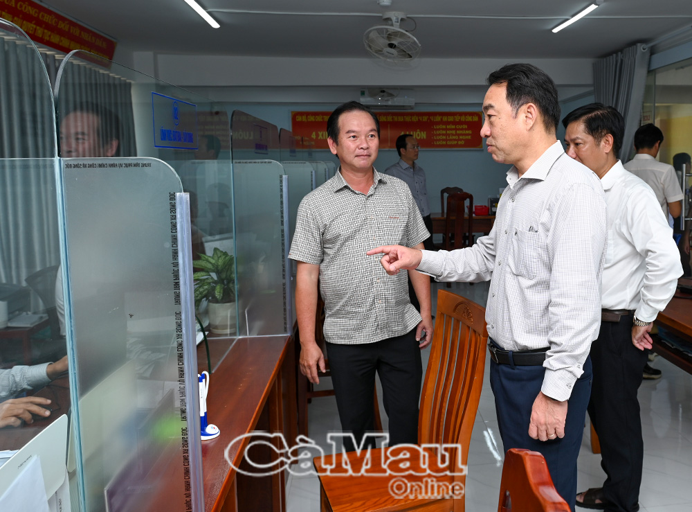 Phó Bí thư Tỉnh uỷ, Chủ tịch UBND tỉnh Lữ Quang Ngời tìm hiểu tình hình hoạt động tại Trung tâm Phục vụ hành chính công xã Sông Đốc.