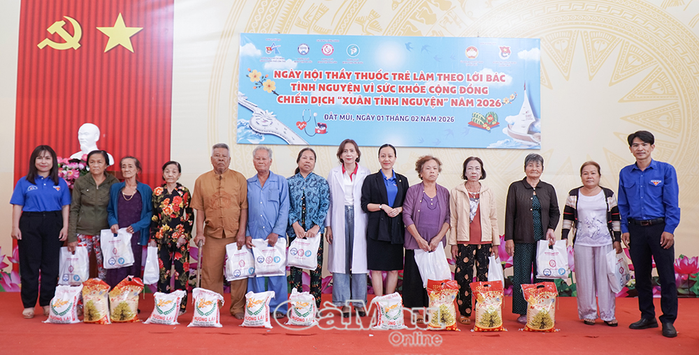 Báo Cà Mau Thực hiện Chiến dịch Xuân tình nguyện năm 2026, Đoàn Thanh niên UBND TP Cần Thơ phối hợp Uỷ ban MTTQ Việt Nam xã Đất Mũi (tỉnh Cà Mau) tổ chức chương trình khám bệnh, cấp thuốc miễn phí và tặng quà người dân địa phương vào sáng 1/2, với chủ đề “Ngày hội thầy thuốc trẻ làm theo lời Bác, tình nguyện vì sức khoẻ cộng đồng”.