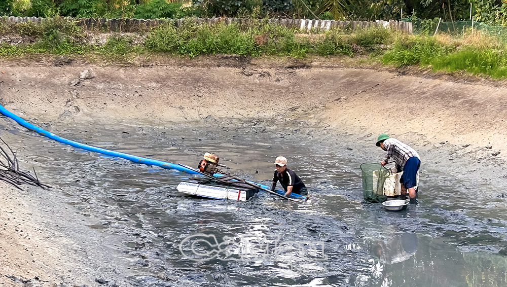 Sau Tết, nông dân tranh thủ thu hoạch cá đồng.