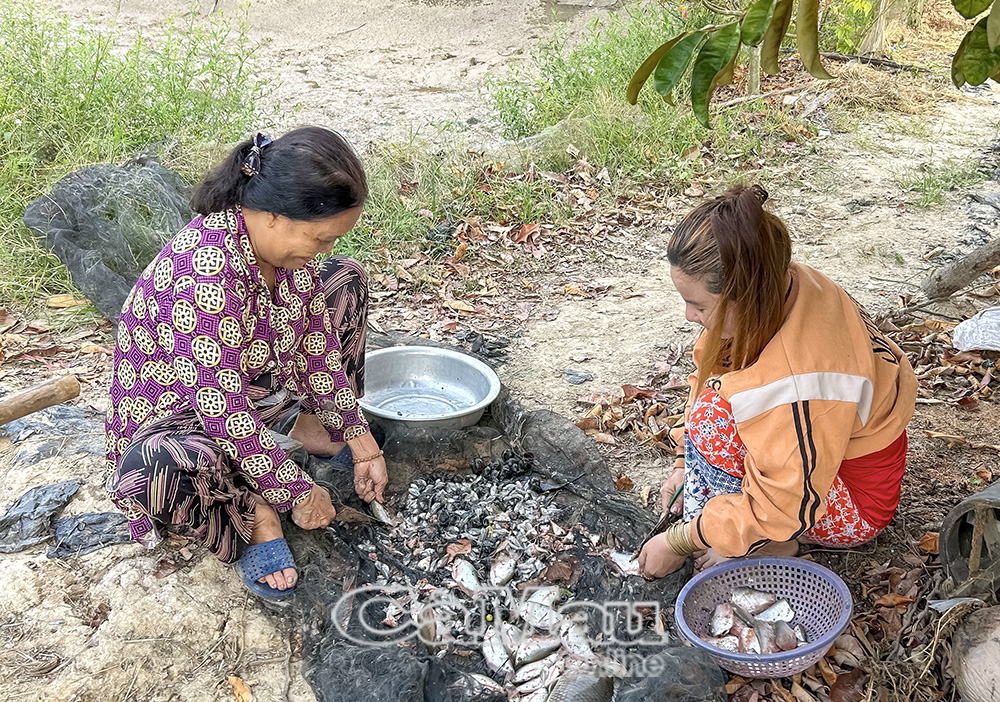 Trời vừa hừng sáng, nhóm Công Ðoàn chuyên thu hoạch cá bổi ở Xã Trần Văn Thời tập hợp đến nhà đã đặt lịch lên cá. Nhóm có 10 thành viên, là những người có kinh nghiệm nuôi và thu hoạch cá bổi. Bằng tình nghĩa, kinh nghiệm, uy tín, chuyện thu hoạch cá bổi mùa Tết được nhóm thực hiện thuận lợi, vui vẻ.