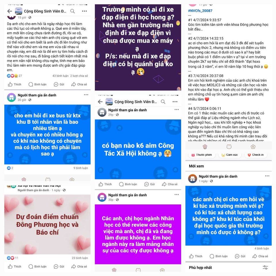 Sôi nổi các bài đăng chia sẻ những băn khoăn của các tân sinh viên. Nguồn: Ảnh Facebook